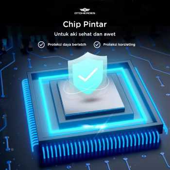 | Proteksi Kelistrikan Pintar Dibekali chip proteksi untuk membantu mencegah korsleting, overcharge, dan risiko kelistrikan lainnya. Pengisian lebih aman dan efisien untuk aki Anda. |