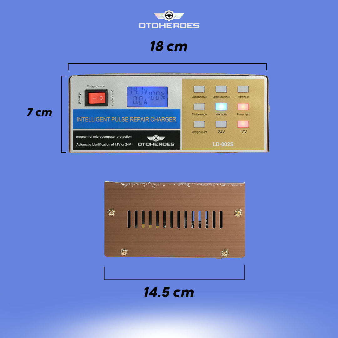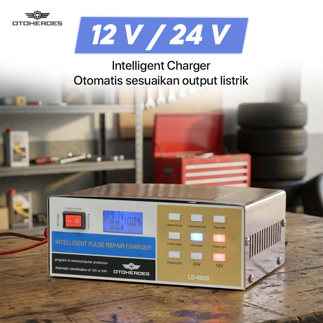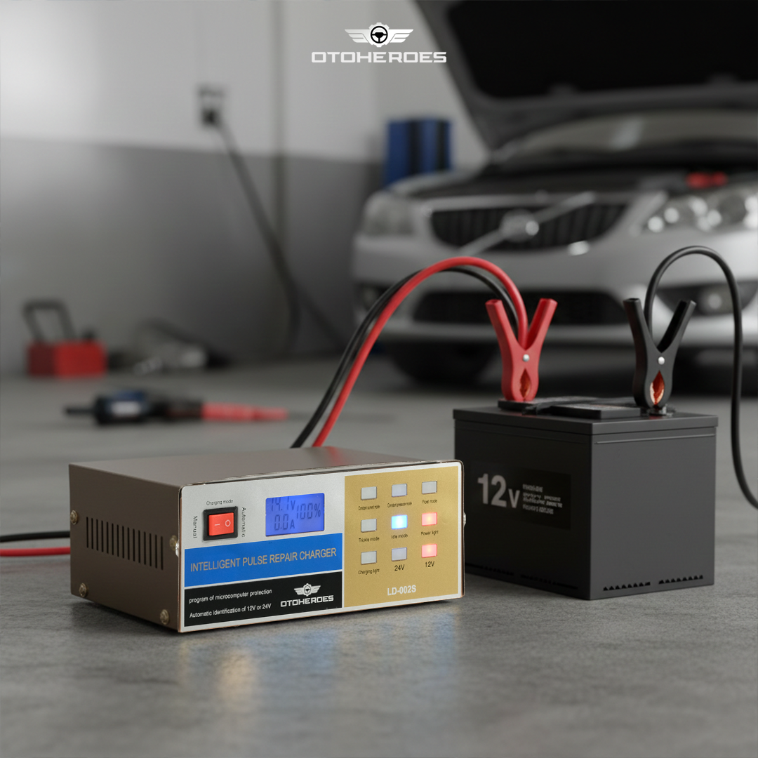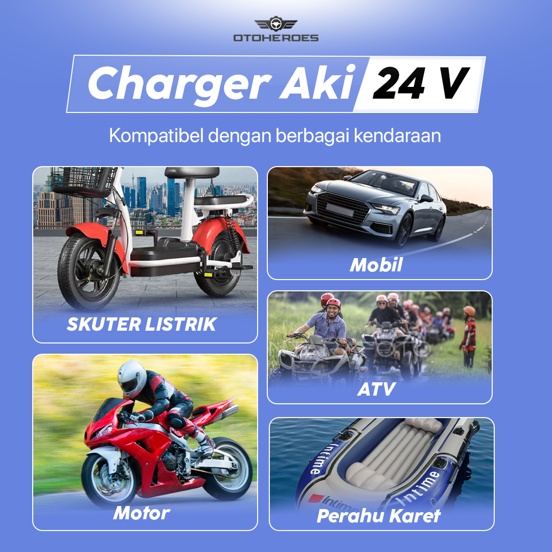Bermasalah dengan aki yang sering drop? Kini Anda dapat mengisi daya aki kendaraan di rumah menggunakan charger aki OTOHEROES. Dibuat untuk aneka jenis kendaraan, charger aki ini cocok untuk kendaraan dengan sistem kelistrikan 12 V dan 24 V. Model portable memudahkan Anda membawa charger aki. Lengkap dengan mode repair dan smart charging untuk memastikan tetap aman digunakan.