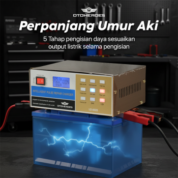 | Perpanjang Umur Aki 5 Tahap pengisian sesuaikan output arus listrik selama pengisian untuk cegah kerusakan pada kendaraan. Efektif cegah overheat dan perpanjang umur aki. |