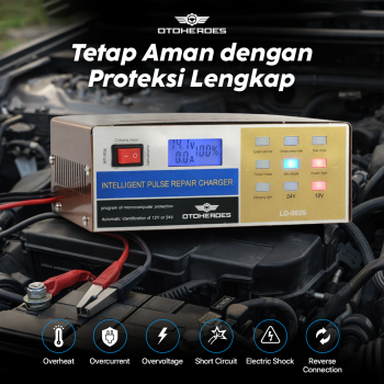 | Aman dengan Proteksi Lengkap Fitur intelligent charger juga membuat charger aki ini dilengkapi proteksi lengkap. Mulai dari proteksi arus pendek hingga pengisian daya berlebih, kini Anda dapat mengisi daya aki kendaraan dengan aman. |