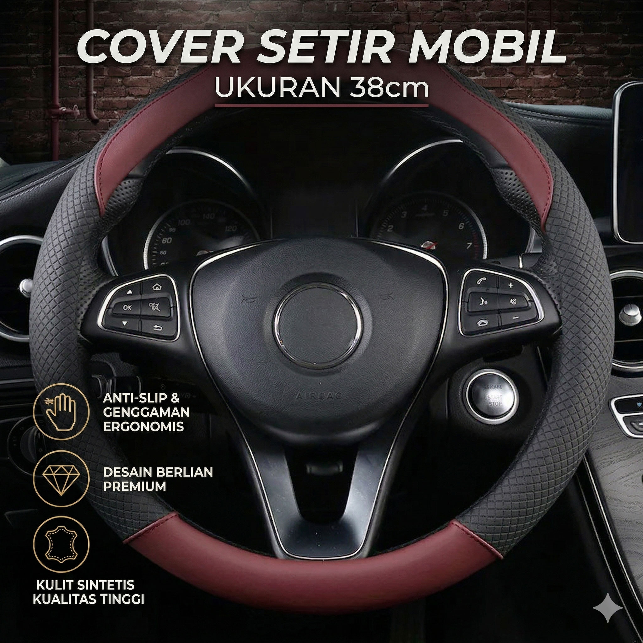 🔹 Tekstur anti slip efektif mencegah tangan tergelincir saat mengemudi.