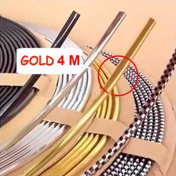 Lis bodi PVC glossy 4 M, pilihan warna emas, dark gray, silver, dan hitam. Tahan benturan ringan, lentur, dan mudah dipasang. Estetik dan protektif, cocok untuk interior dan eksterior mobil. Tampilan mewah tanpa modifikasi besar.