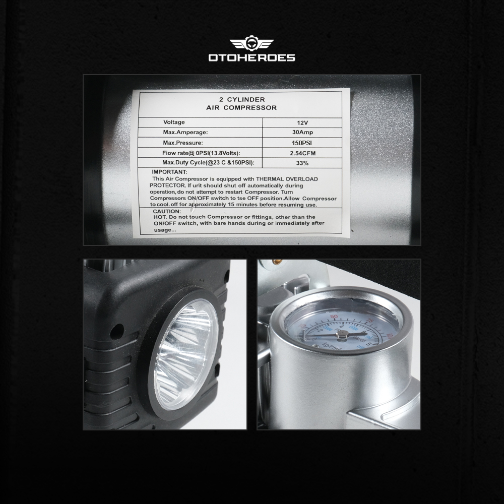 🔹 Menggunakan 2 silinder yang menghasilkan angin super kuat hingga 150 PSI.