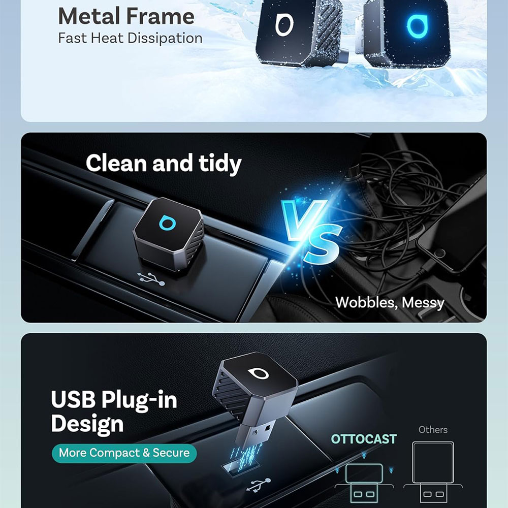 Upgrade mobil kamu dengan wireless CarPlay mini cube 3.0 dari Ottocast! Mengubah koneksi kabel jadi wireless, dengan chip A7S 2025, WiFi dual band & Bluetooth 5.0 untuk koneksi cepat dan stabil tanpa delay, auto connect 10 detik, bisa 2 perangkat sekaligus, AI Assistant Ready, kontrol tetap full dari mobil, desain mini metal anti panas, kompatibel 98% mobil CarPlay atau Android Auto, plug & play tanpa ribet.