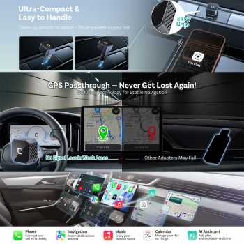 | Desain Kompak dan Portabel Mendukung lebih dari 98% mobil yang sudah memiliki fitur CarPlay kabel. Bisa digunakan untuk iPhone (iOS 10+) dan Android (Android 11+). Menjadi solusi praktis untuk berbagai jenis mobil tanpa perlu upgrade head unit. |