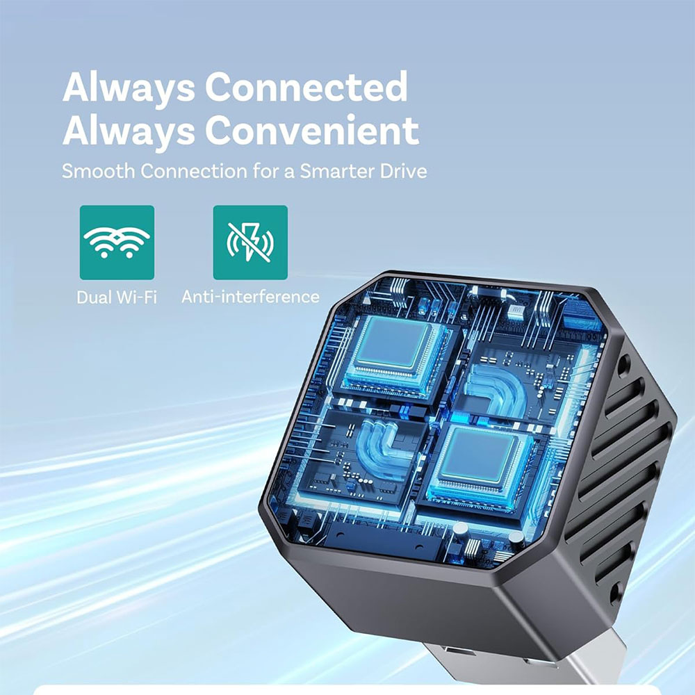 | Performa Cepat dengan Chip A7S Wireless CarPlay Mini Cube 3.0 dibekali chipset A7S terbaru dengan performa tinggi yang memastikan koneksi tetap stabil tanpa lag. Didukung WiFi dual band 2.4 GHz & 5 GHz serta Bluetooth 5.0 untuk koneksi lebih cepat. Cocok untuk navigasi, musik, dan telepon tanpa gangguan. |
