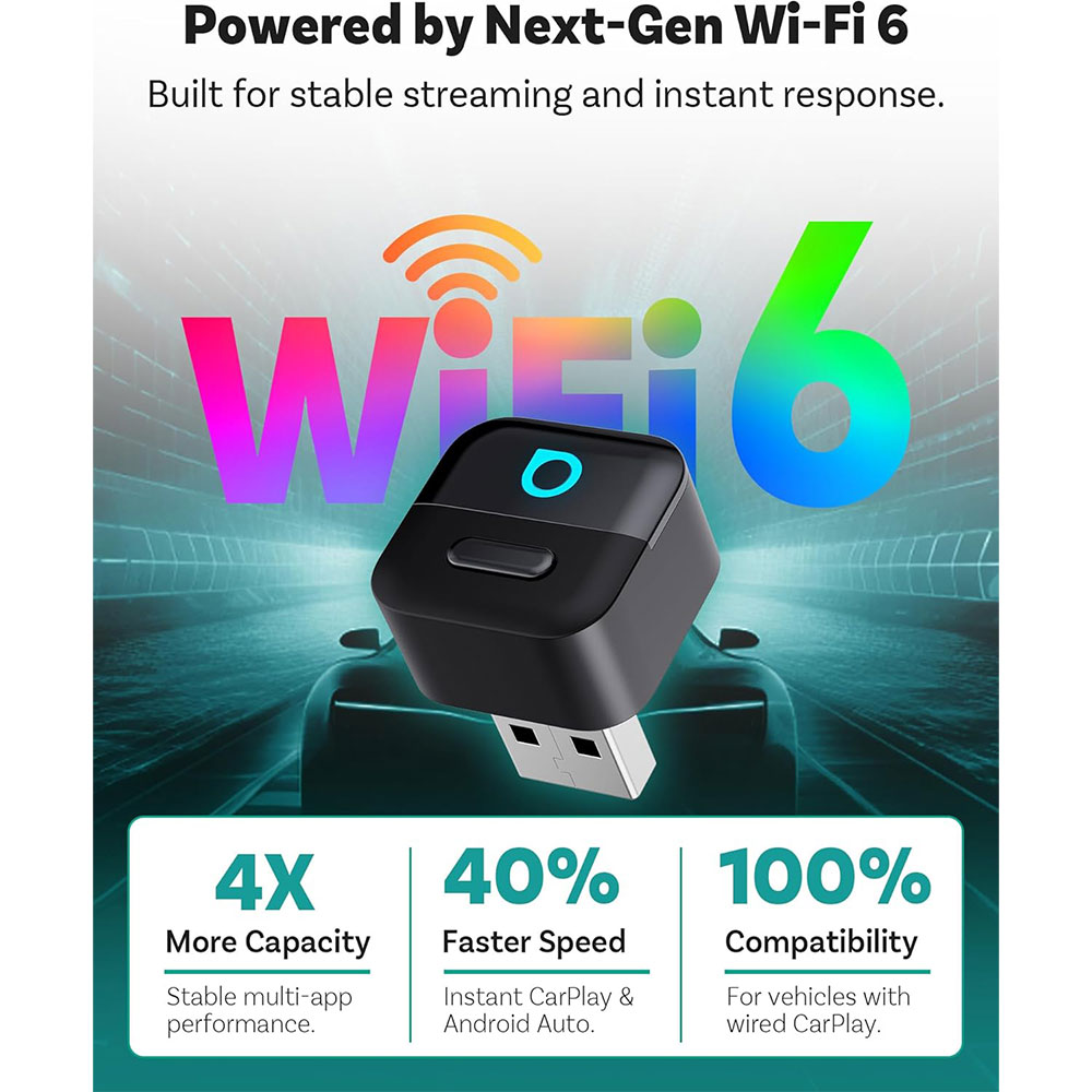 Upgrade mobil kamu dengan Ottocast mini pico wireless CarPlay adapter yang mengubah CarPlay & Android Auto kabel jadi wireless, didukung WiFi 6 & Bluetooth 5.4 untuk koneksi cepat dan stabil. Fitur dual device, auto connect, plug & play, serta tetap mendukung kontrol mobil (touchscreen & setir), kompatibel USB-A & USB-C untuk mobil dengan CarPlay/Android Auto bawaan.