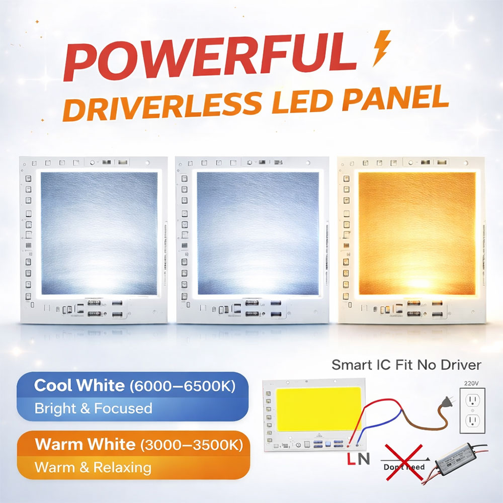 Produk ini sudah dilengkapi IC pintar sehingga bisa langsung disambungkan ke listrik AC 220 V. Kamu tidak perlu membeli driver tambahan, sehingga lebih hemat biaya dan lebih mudah instalasi. Cocok untuk pemula maupun profesional.
