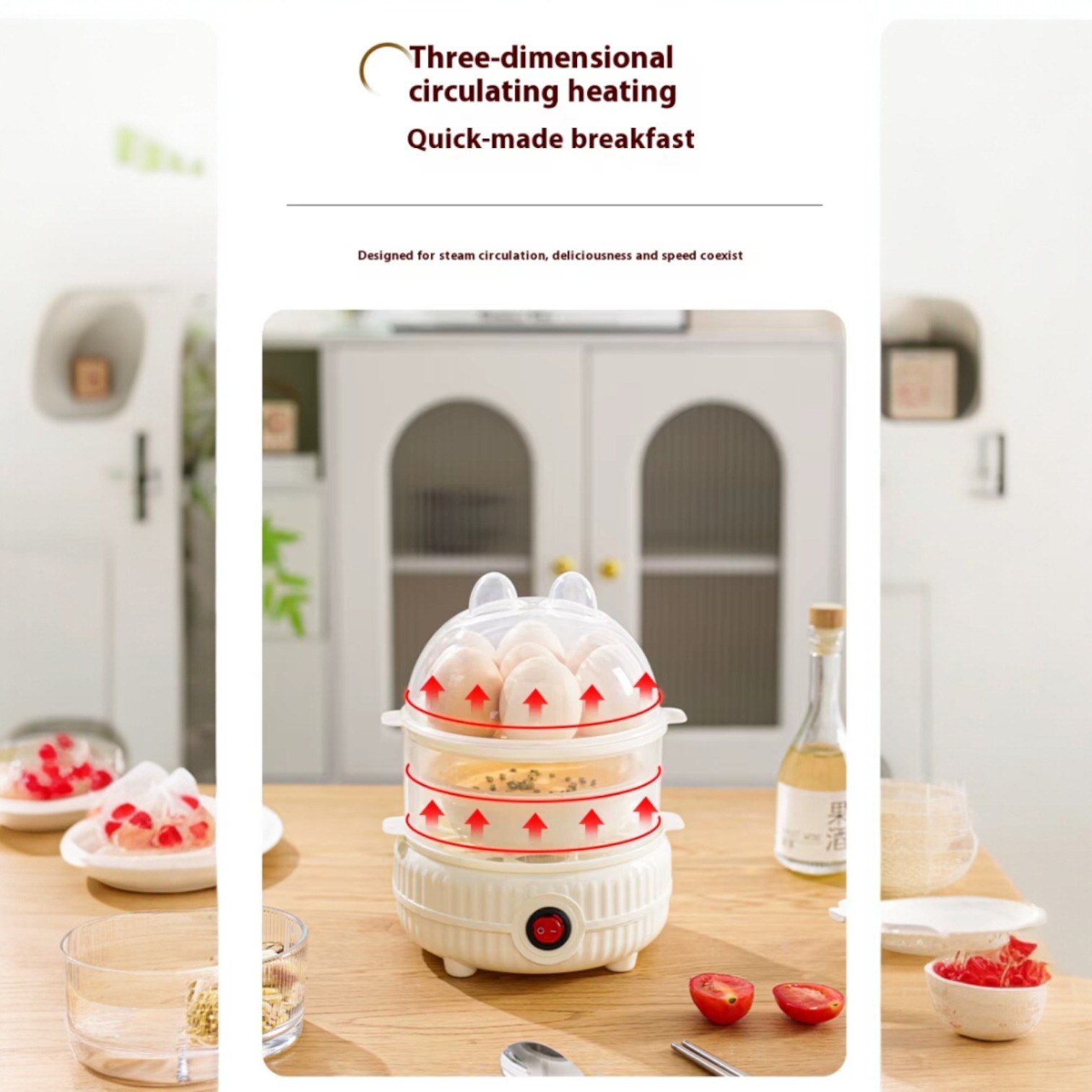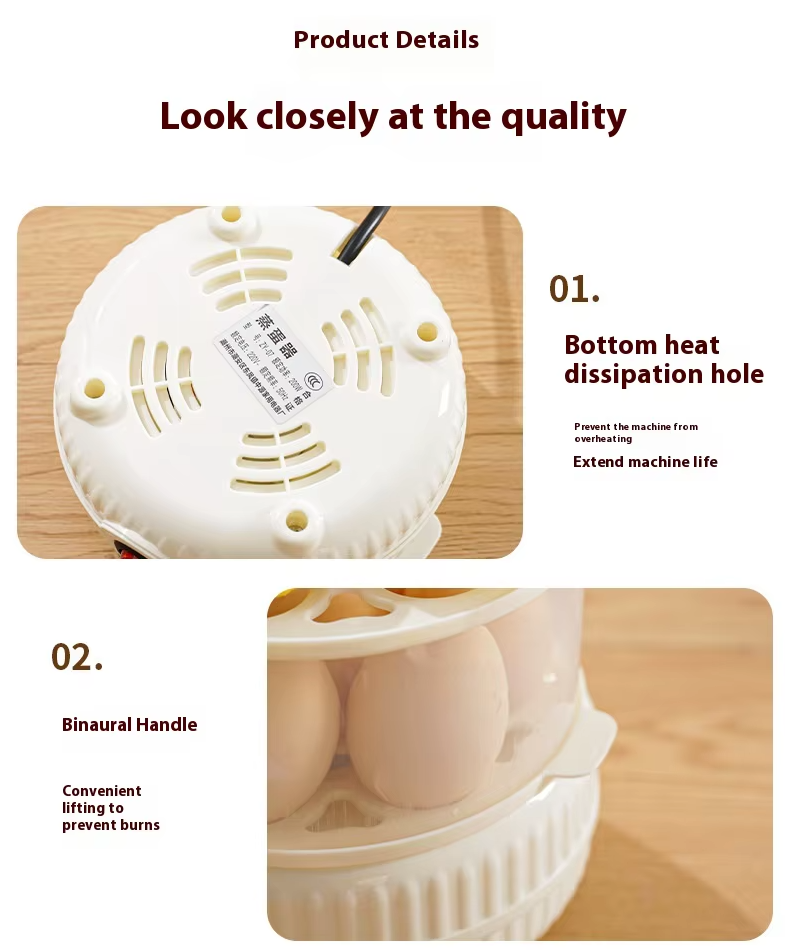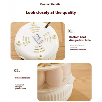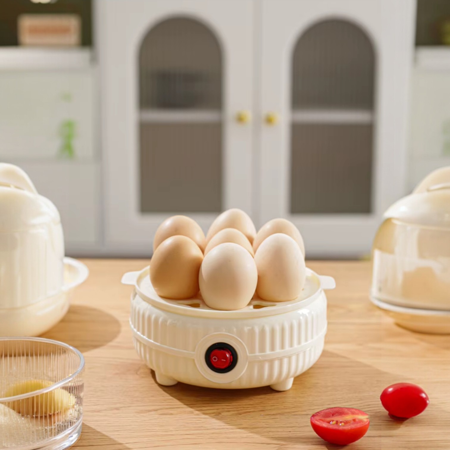 | Kapasitas 7 Butir Telur Perangkat ini dilengkapi dengan 7 slot untuk butir telur yang dapat dimasak sekaligus dalam satu waktu. Dengan kapasitas ini, Anda bisa menyiapkan lebih banyak telur dalam sekali operasi, ideal untuk keluarga kecil atau penghuni kost. Desain slot yang rapi membuat setiap telur matang merata tanpa repot bolak-balik memasak. |