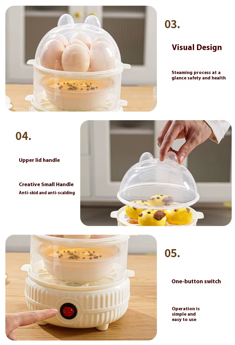 | Dua Layer Serbaguna Alat rebus OVOLUX memiliki dua layer berbeda yang dapat Anda gunakan secara fleksibel. Layer pertama cocok untuk mengukus makanan lain, termasuk telur kocok, sayuran, atau dim sum. Sementara layer kedua difokuskan untuk steam telur utuh, sehingga semua kebutuhan memasak Anda dapat terpenuhi dalam satu alat. |