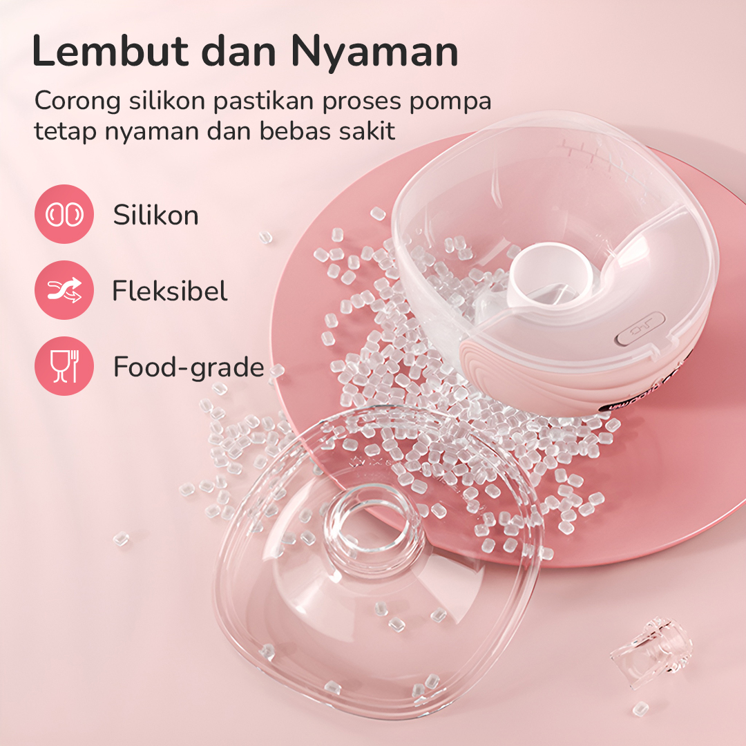| Lembut dan Nyaman Corong silikon BPA Free lembut yang fleksibel dan nyaman, mengurangi risiko iritasi dan luka. Botol penampung dari bahan PP aman untuk menyimpan ASI karena tidak melepaskan zat berbahaya. |