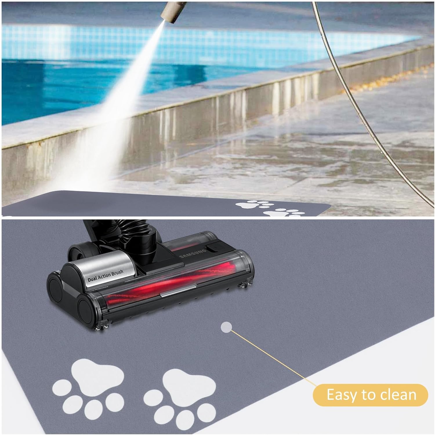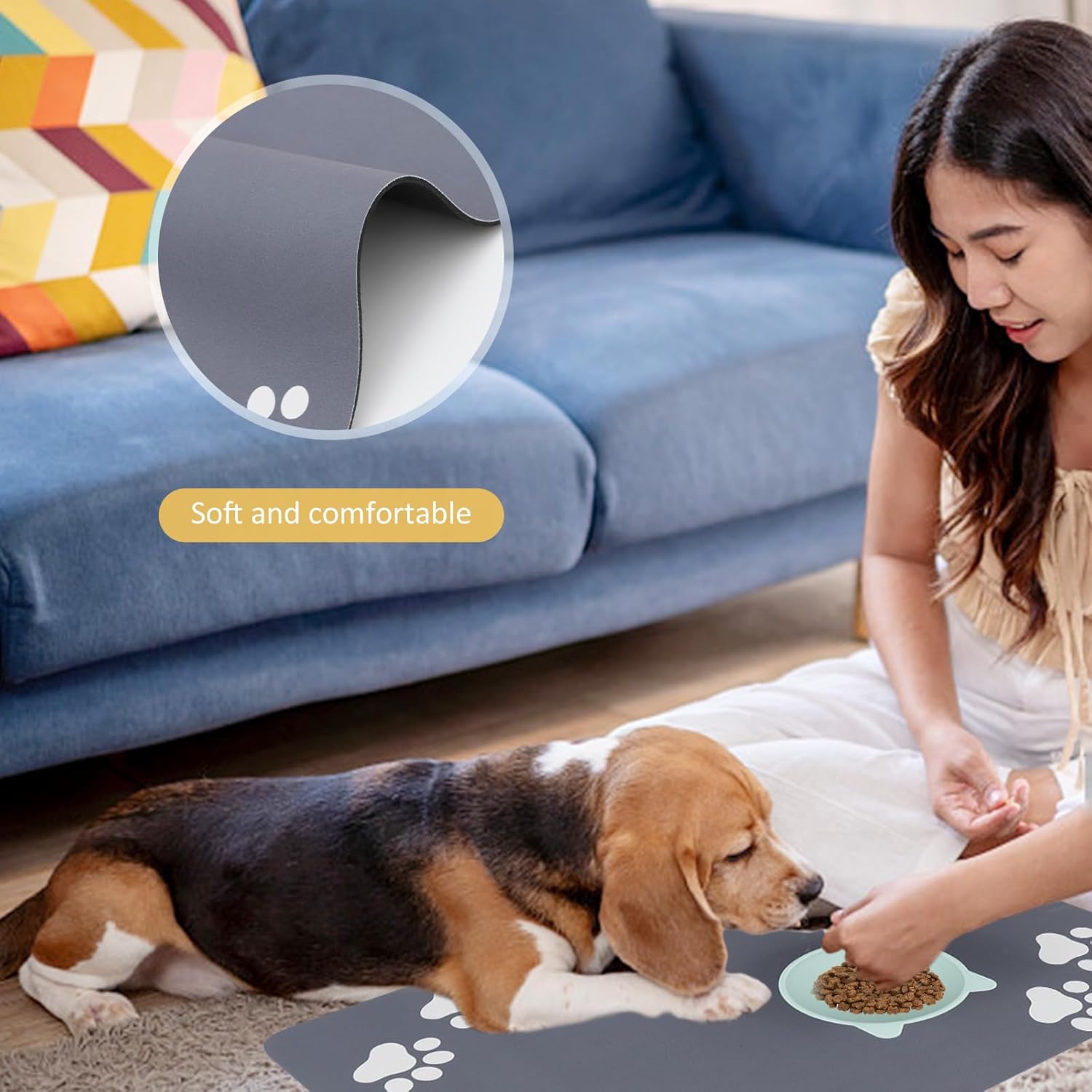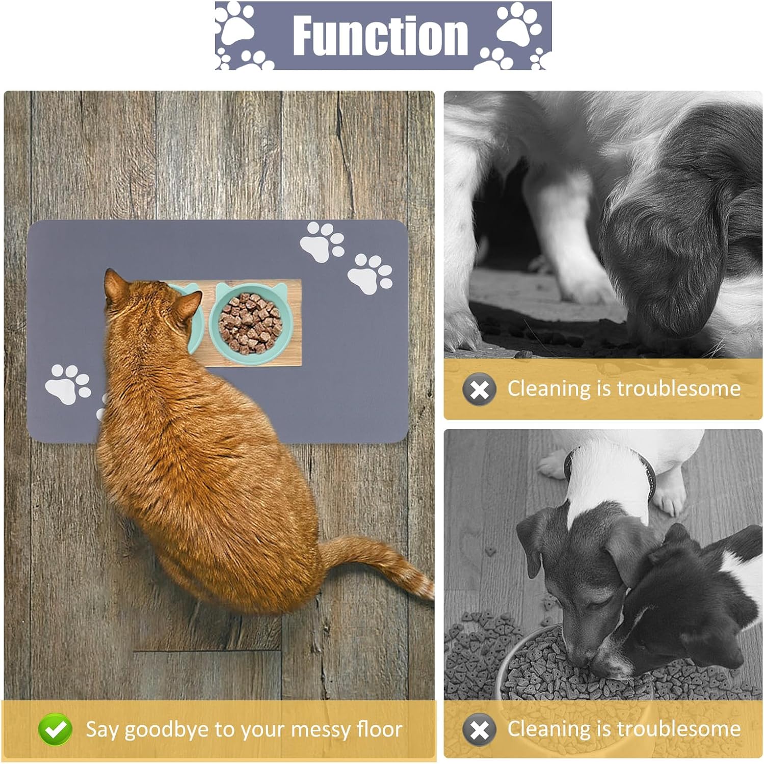 | Lantai Tetap Kering dan Aman PAWLAND Pet Feeding Mat dilengkapi lapisan karet anti bocor dan anti slip yang efektif mencegah air atau sisa makanan merembes ke lantai. Ketika kucing atau anjing Anda keluar dari area makan dengan telapak kaki basah, cairan akan cepat terserap oleh alas tanpa membuat lantai rumah Anda basah atau kotor. Permukaan anti selip juga menjaga mangkuk tetap pada tempatnya, sehingga aktivitas makan menjadi lebih bersih dan rapi. |