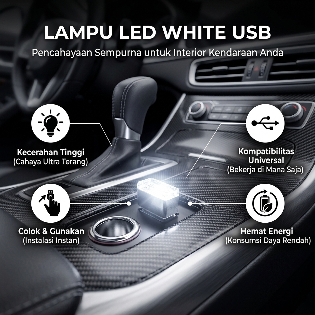 | Ukuran Kecil dan Ringkas Ukurannya yang kecil membuat lampu LED USB ini cocok digunakan di ruang-ruang sempit. Oleh karena itu, menggunakannya di area head unit atau persneling tidak akan mengganggu aksesibilitas Anda saat mengendarai mobil. |
