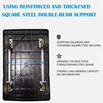 | Rangka Kokoh untuk Beban Berat Terbuat dari kombinasi material baja dan platform plastik tebal berkualitas tinggi, troli ini mampu menahan beban berat hingga 217 kg dengan stabil tanpa risiko deformasi. Sambungan-sambungan diperkuat dengan rivet metal presisi, memastikan keandalan jangka panjang meskipun digunakan secara intens. |