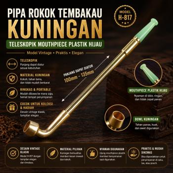 Sedang mencari pipa rokok bergaya klasik dengan harga terjangkau dan desain unik? Banyak produk biasa terlihat standar dan kurang menarik untuk koleksi maupun penggunaan pribadi. Kini hadir pipa tembakau kuningan teleskopik model vintage dengan mouthpiece plastik hijau elegan. Cocok untuk pecinta gaya retro yang ingin tampil beda tanpa perlu biaya mahal.