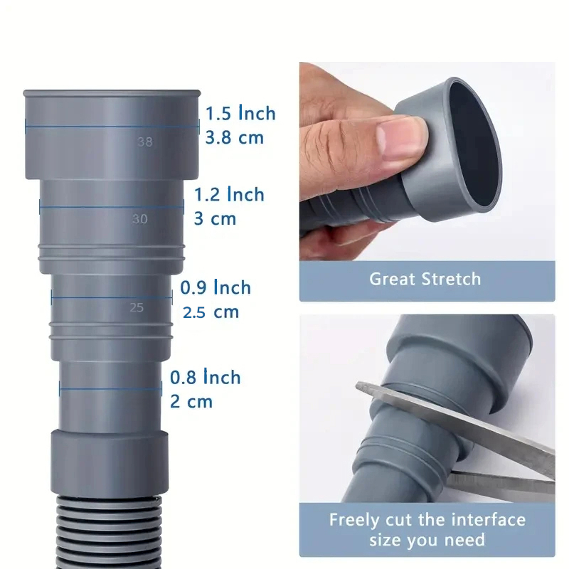 | Panjang Ideal Dengan panjang 1.5 M dan 2 M, PIPAS memberikan keleluasaan ekstra untuk menjangkau saluran pembuangan tanpa harus geser-geser mesin. Sangat cocok untuk Anda yang punya ruang cuci sempit atau posisi saluran air yang agak jauh. |