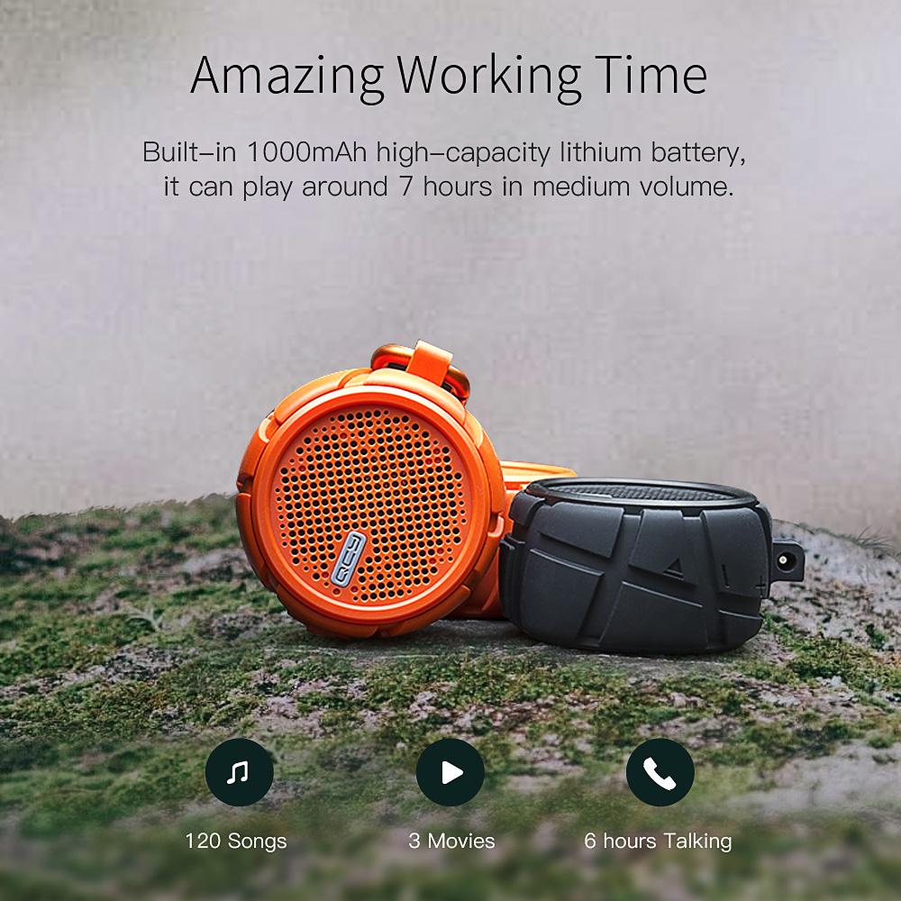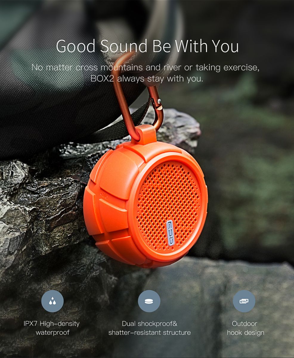 Speaker QCY BOX2 ini memiliki pengait atau carabiner untuk menggantung speaker di tas, tali pinggang dan tempat lainnya. Teknologi waterproof dan desain body yang tangguh membuat speaker ini cocok dibawa berpetualang, camping dan kegiatan outdoor lainnya.