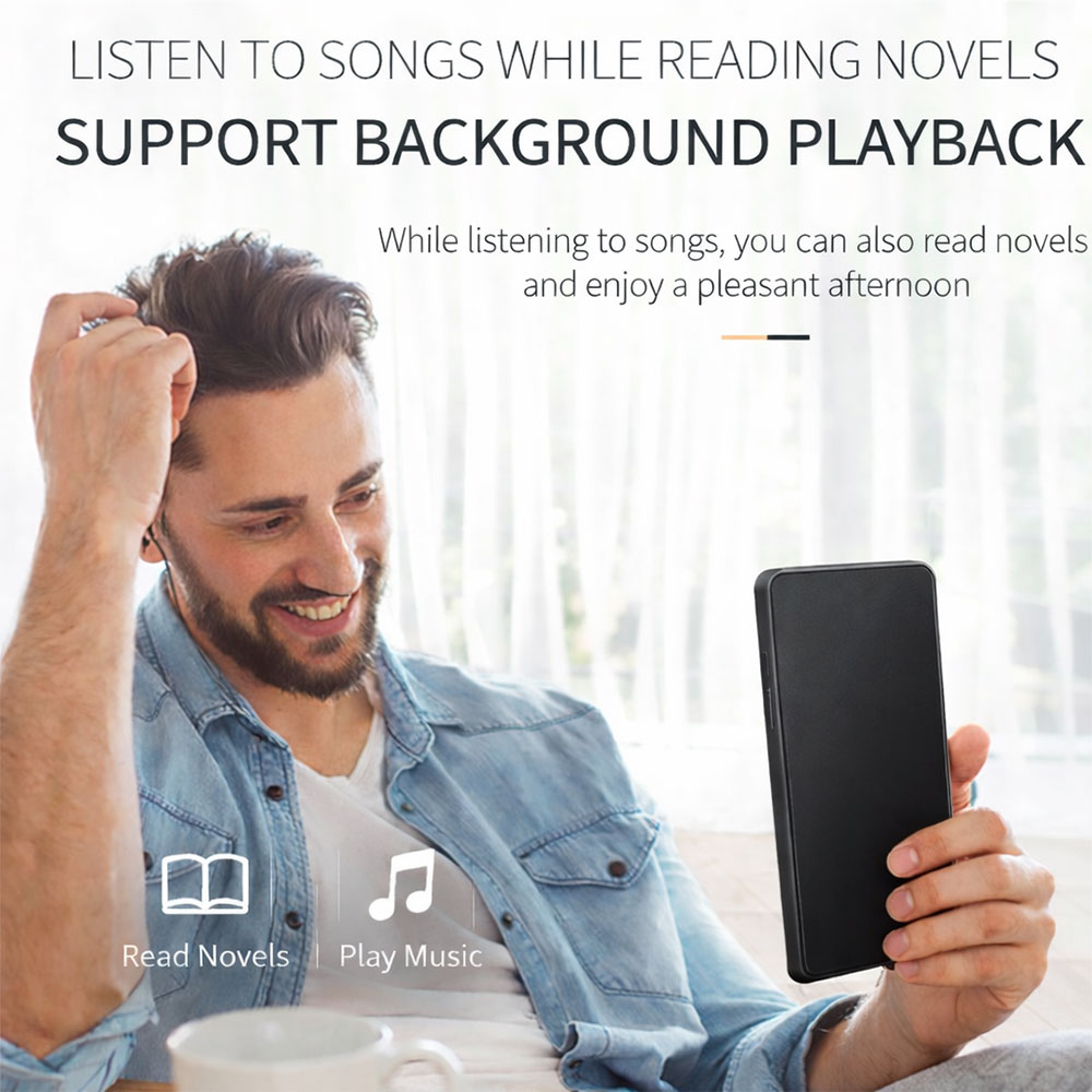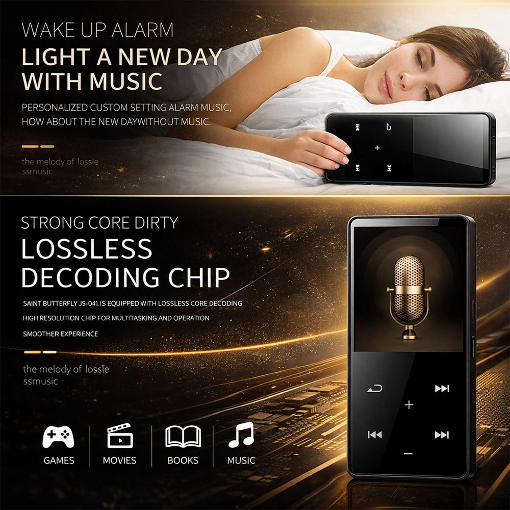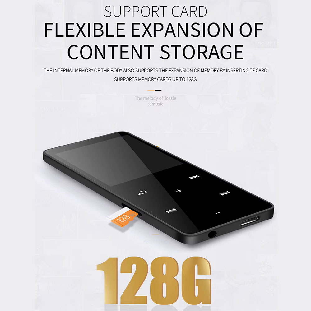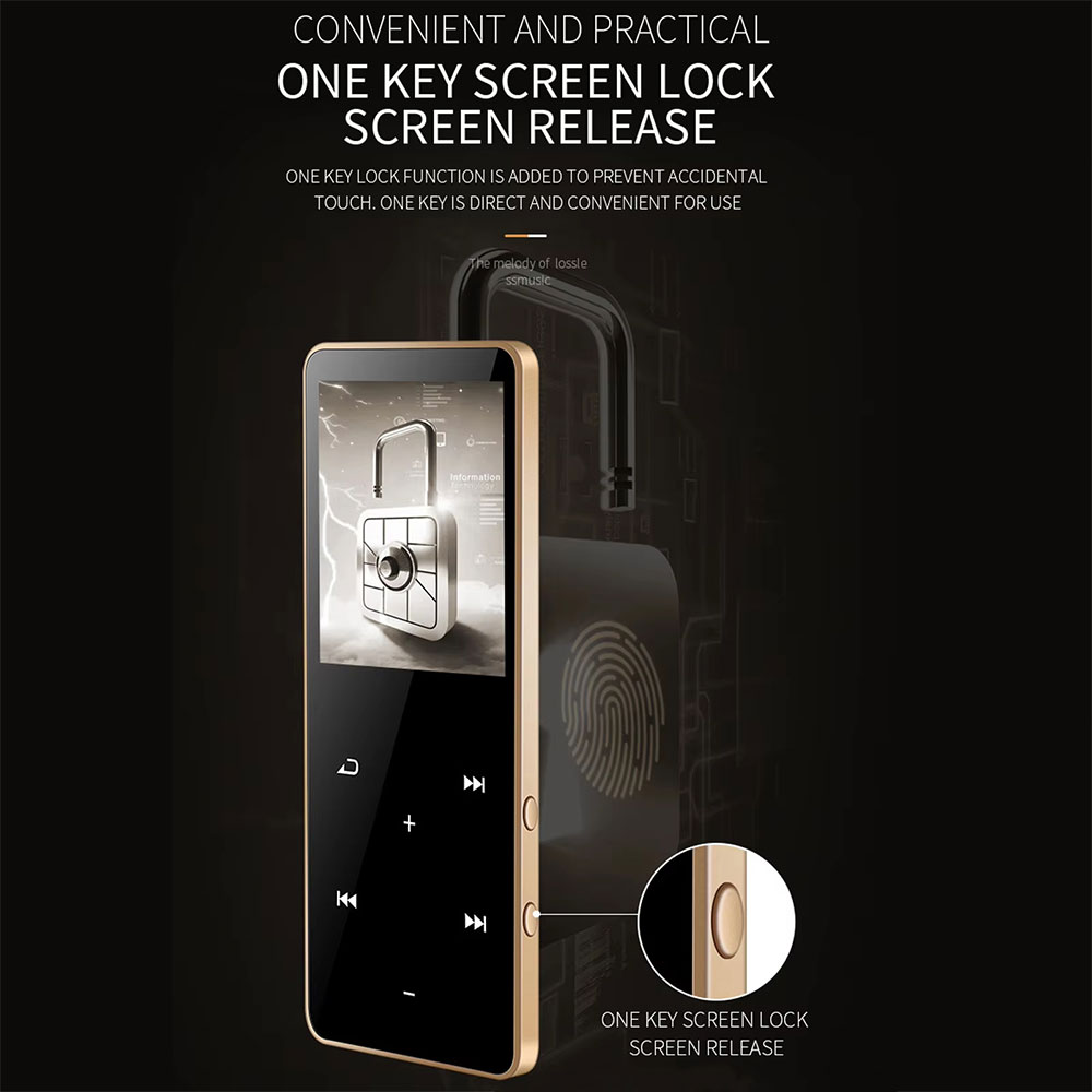 | Bluetooth 5.0 HiFi Lossless Dengan teknologi Bluetooth 5.0, MP3 digital audio player terhubung stabil ke speaker atau TWS dengan latensi rendah dan kualitas suara lossless. Format MP3 dan MP4 didukung penuh sehingga setiap detail nada tersampaikan tanpa distorsi pengalaman mendengarkan yang sesungguhnya memanjakan telinga. |