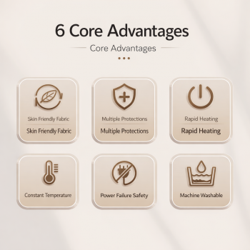 | 4 Pengaturan Suhu dengan Timer Otomatis Dilengkapi 4 level suhu yang bisa disesuaikan dengan kebutuhan tubuh Anda. Timer otomatis membantu mengatur durasi pemanasan agar lebih hemat listrik dan aman saat digunakan sebelum tidur. Sistem kontrol menjaga suhu tetap stabil dan tidak naik turun drastis. |