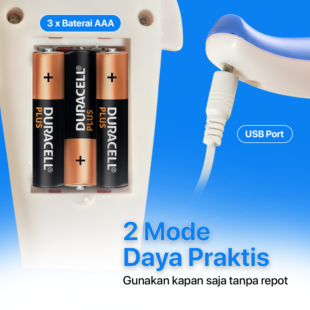 | 2 Mode Daya Praktis Menggunakan alat pijat elektrik kapan saja bukan masalah berkat 2 mode daya yang ditawarkan. Gunakan baterai AAA untuk waktu penggunaan lebih panjang atau kabel daya untuk menyalakan alat pijat elektrik. |