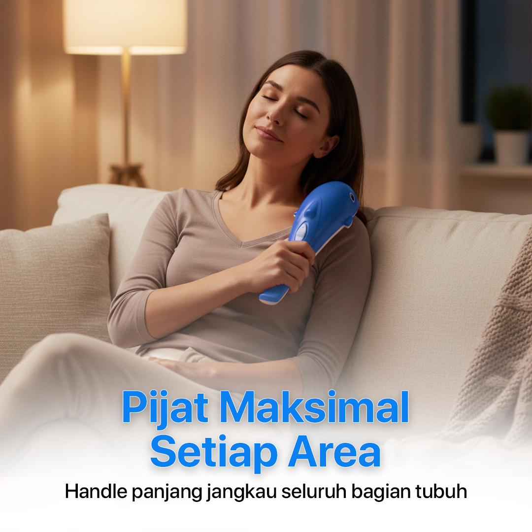| Pijat Maksimal Setiap Area Model ergonomis dengan handle panjang jangkau seluruh bagian tubuh, hingga area punggung dan pinggang yang sulit. Dapatkan hasil pijatan yang lebih maksimal. |