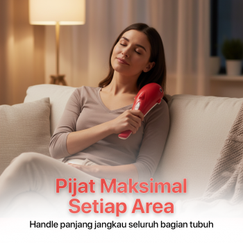 | Pijat Maksimal Setiap Area Model ergonomis dengan handle panjang jangkau seluruh bagian tubuh, hingga area punggung dan pinggang yang sulit. Dapatkan hasil pijatan yang lebih maksimal. |