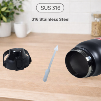 | Material Stainless Steel Terbaik Bagian dalam tumbler menggunakan stainless steel 316 food grade yang dikenal lebih tahan korosi, tidak menyerap bau, dan tidak meninggalkan rasa logam. Material ini menjaga kualitas minuman tetap bersih dan aman, cocok untuk air putih, teh, kopi, susu, hingga minuman herbal tanpa khawatir perubahan rasa. |