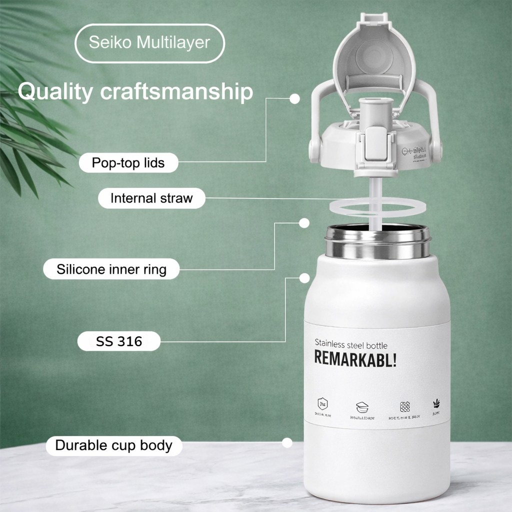 Botol minum tumbler dari One Two Cups berbahan 316 stainless steel dengan kapasitas besar 1.7 L, dirancnang untuk menyimpan air panas maupun dingin lebih lama. Dilengkapi tutup bouncing lid yang praktis dan double spout untuk memudahkan Anda minum dalam berbagai situasi. Cocok digunakan untuk olahraga, aktivitas outdoor, kerja, hingga perjalanan jauh.