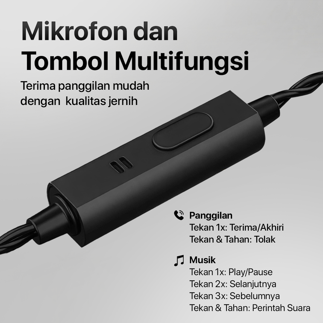 | Audio Detail & Seimbang Menggunakan driver 10 mm berkualitas tinggi yang mampu menghasilkan suara lebih detail dan natural. Vokal terdengar jernih, instrumen terasa hidup, dan distorsi tetap rendah. |