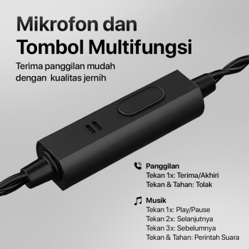 | Microphone Terintegrasi, Komunikasi Jelas Dilengkapi mikrofon berkualitas yang mampu menangkap suara dengan jelas dan minim gangguan. Cocok untuk telepon, meeting online, hingga komunikasi saat gaming. |