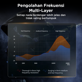 | Detail Lebih Hidup di Setiap Nada Dibekali driver berkualitas tinggi, earphone ini mampu menghasilkan bass padat dan bertekstur, vokal di midrange jernih serta natural, sementara treble tajam namun halus. |