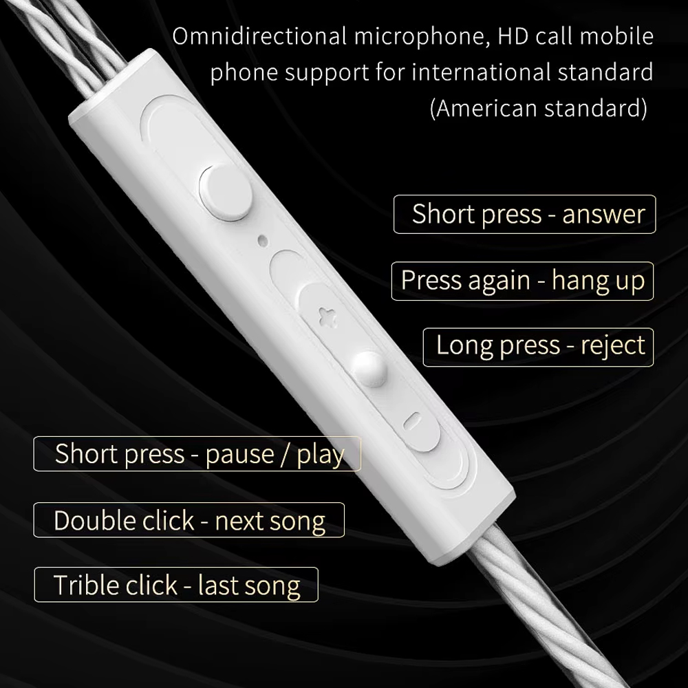 | Mikrofon Jenih Earphone ini dilengkapi dengan mikrofon, memungkinkan Anda untuk menerima panggilan telepon, melakukan voice chat, dan aktivitas komunikasi lainnya dengan mudah. Fungsi mikrofon yang multifungsi menjadikan earphone ini pilihan sempurna bagi mereka yang membutuhkan kenyamanan dan fungsionalitas dalam satu produk. |