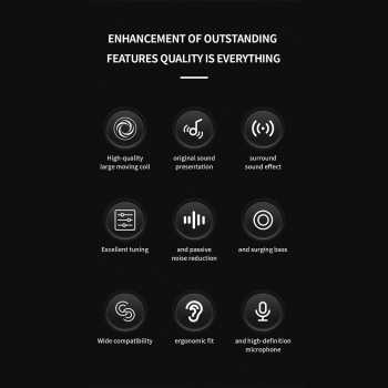 | Suara Lebih Hidup & Mengelilingi Dilengkapi teknologi surround sound HiFi, earphone ini mampu menciptakan efek suara yang terasa lebih luas dan mendalam. Posisi instrumen, vokal, hingga efek suara dapat terdengar lebih jelas dan realistis, memberikan sensasi audio yang seakan mengelilingi telinga. Sangat cocok untuk menikmati musik, menonton film, maupun bermain game dengan tingkat imersi tinggi. |