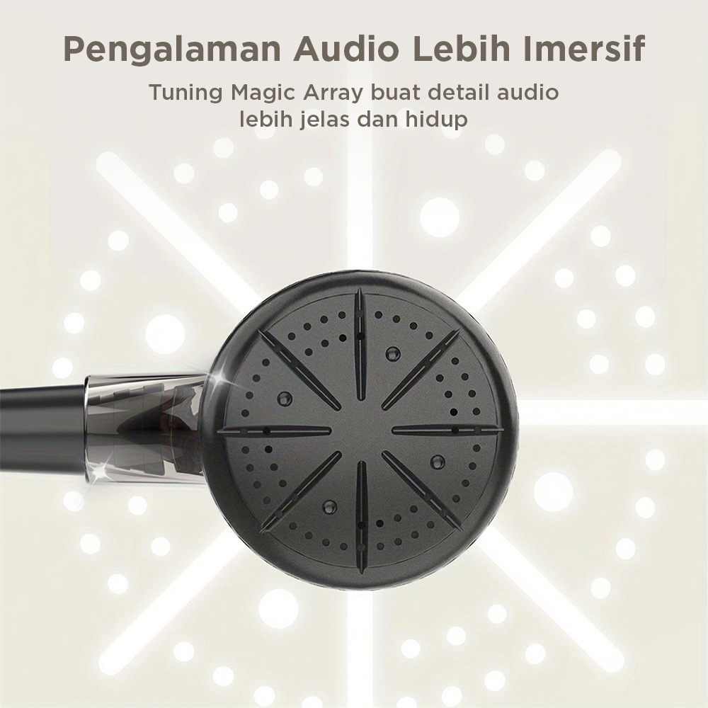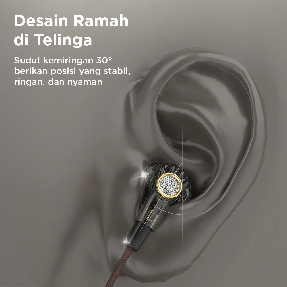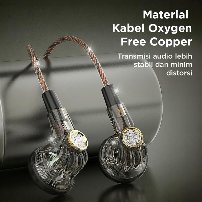Desain struktur internal dibuat dengan perhitungan akustik yang matang sehingga suara dapat beresonansi dengan optimal di dalam bodi earphone.