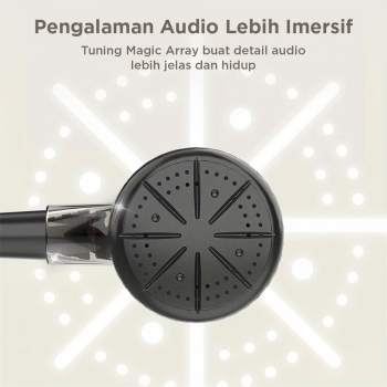 Bass terdengar dalam dan solid, sementara suara mid dan treble tetap jernih. Cocok untuk berbagai genre musik, film, maupun game.