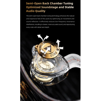| Semi Open Back Acoustic Tuning yang Lebih Natural Desain semi open back memungkinkan aliran udara yang lebih baik untuk menciptakan ruang suara yang lebih luas dan alami. Teknologi ini membantu meningkatkan separasi instrumen dan memberikan sensasi audio yang lebih realistis saat digunakan dalam waktu lama. |