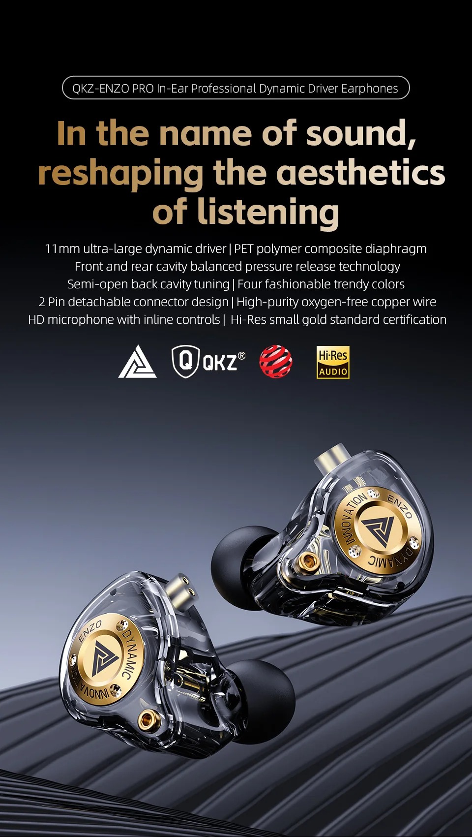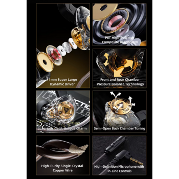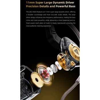 QKZ Enzo wired earphone dirancang untuk pengguna yang menginginkan karakter suara bertenaga dengan bass yang lebih terasa tanpa kehilangan detail. Mengusung dynamic driver berukuran besar 11 mm, earphone ini mampu menghadirkan output audio yang lebih penuh dan imersif untuk musik maupun gaming. Sistem semi open back acoustic tuning membantu menciptakan soundstage yang lebih luas dan natural dibanding earphone tertutup biasa. Dilengkapi mikrofon dan kontrol satu sentuhan, QKZ Enzo memberikan kemudahan saat menerima panggilan atau mengontrol musik tanpa harus menyentuh ponsel. Dengan konektor AUX 3.5 mm yang universal dan kabel oxygen free copper berkualitas, earphone ini siap digunakan di berbagai perangkat dengan kualitas suara yang konsisten.