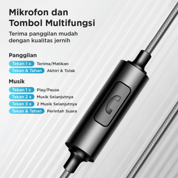 | Dilengkapi Mikrofon dan Kontrol Dilengkapi mikrofon bawaan untuk menerima panggilan telepon dengan jelas. Tersedia juga tombol kontrol untuk pengoperasian praktis tanpa mengeluarkan ponsel. |
