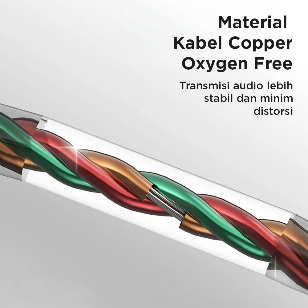 | Kabel OFC Berkualitas Menggunakan kabel 32 core OFC (Oxygen Free Copper) yang membantu transmisi sinyal audio lebih stabil dan tidak mudah kusut. |