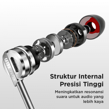 | Struktur Internal yang Luar Biasa Struktur internal earphone ini sangat kuat sehingga suara yang dihasilkan dapat beresonansi dengan baik di dalam tubuh earphone ini. |