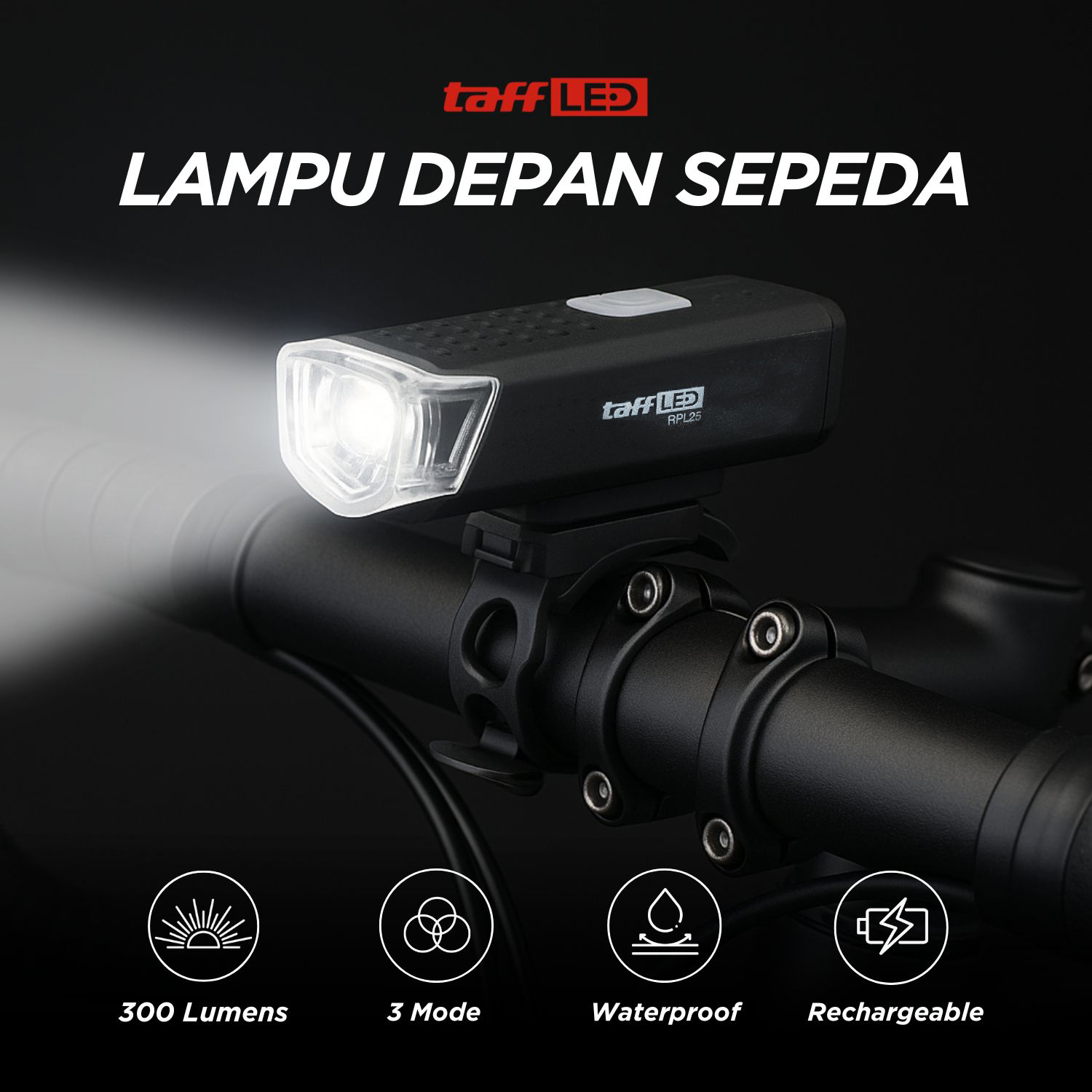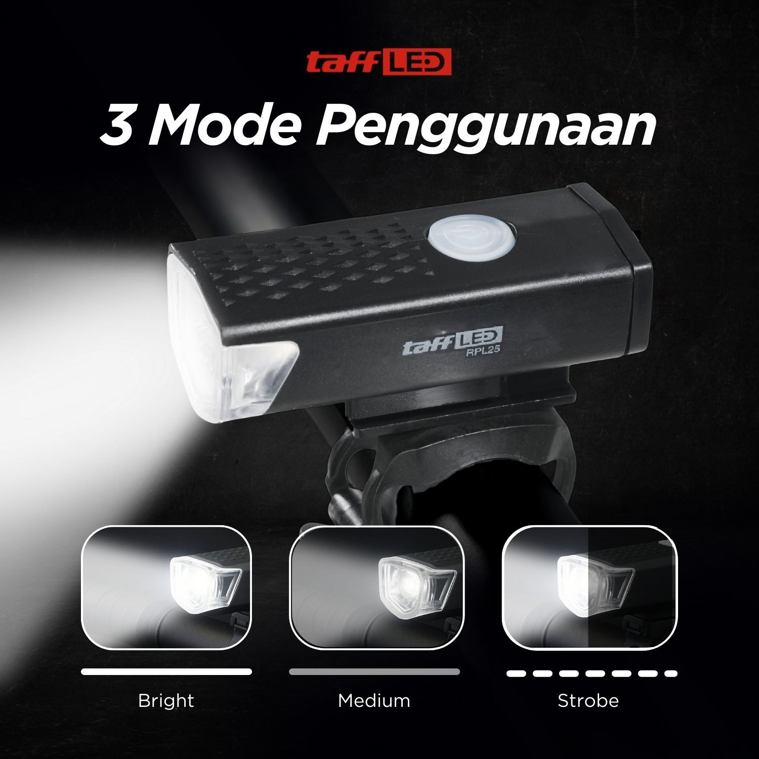 Pastikan waktu gowes di malam hari tetap aman dengan memasang lampu depan sepeda dari TaffLED. Chip LED yang dipasang dapat menghasilkan cahaya super terang dengan 3 mode penggunaan sehingga Anda bisa bersepeda dengan aman dan tenang di area gelap atau malam hari sekalipun. Proteksi waterproof membuat lampu tetap menyala terang meski digunakan saat hujan sekalipun.
