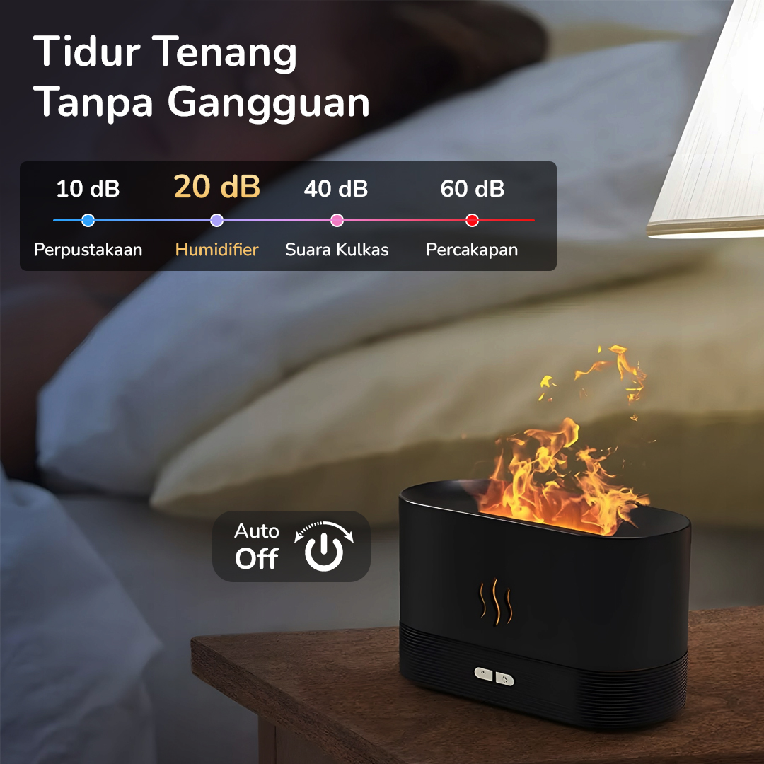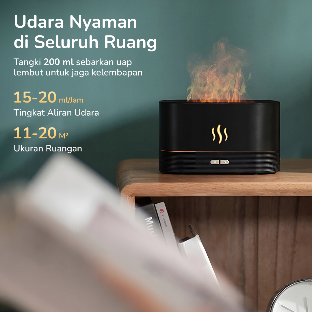 | Sentuhan Api Estetis Hadir dengan model flame light, kabut uap yang dihasilkan terlihat seperti kobaran api yang cantik. Cocok untuk melengkapi dekorasi ruangan. |