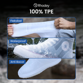 | Bahan Kualitas Terbaik Terbuat dari bahan TPE berkualitas, jas hujan sepatu ini waterproof yang dapat melindungi sepatu dengan maksimal. Karakter bahan yang tebal dan fleksibel juga membuat produk Rhodey tidak mudah rusak. |