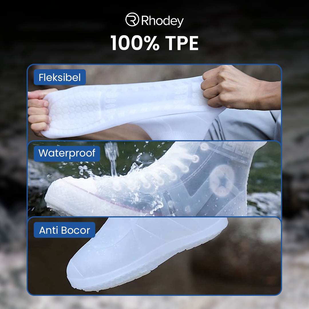 Terbuat dari bahan TPE berkualitas, jas hujan sepatu ini waterproof yang dapat melindungi sepatu dengan maksimal. Karakter bahan yang tebal dan fleksibel juga membuat produk Rhodey tidak mudah rusak.