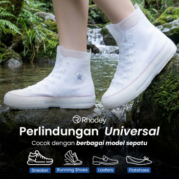 Dibuat untuk menjaga kondisi sepatu, jas hujan Rhodey hadir dengan model universal. Gunakan untuk melindungi aneka model dan jenis sepatu, mulai dari sneaker, running shoes, loafers, hingga flatshoes.