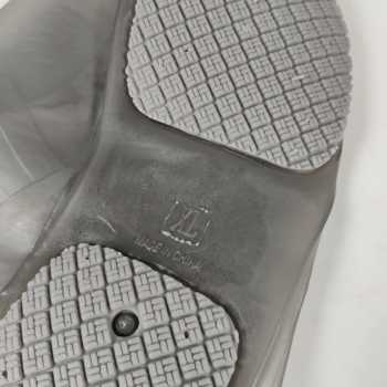 | Alas Non-Slip Digunakan untuk beraktivitas di saat hujan, bagian alas jas hujan sepatu ini dilengkapi alur non-slip khusus. Alur ini berfungsi untuk mencegah penggunanya terpeleset atau terjatuh saat berjalan di medan yang licin akibat hujan. |