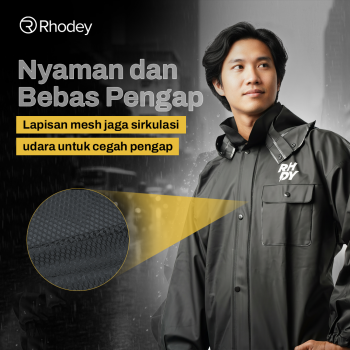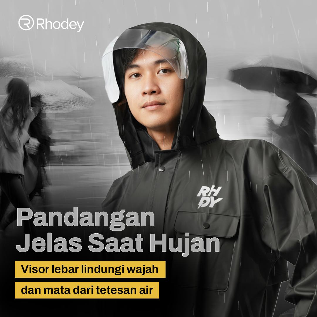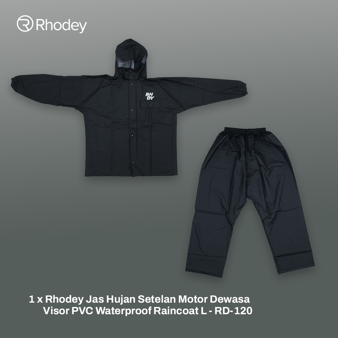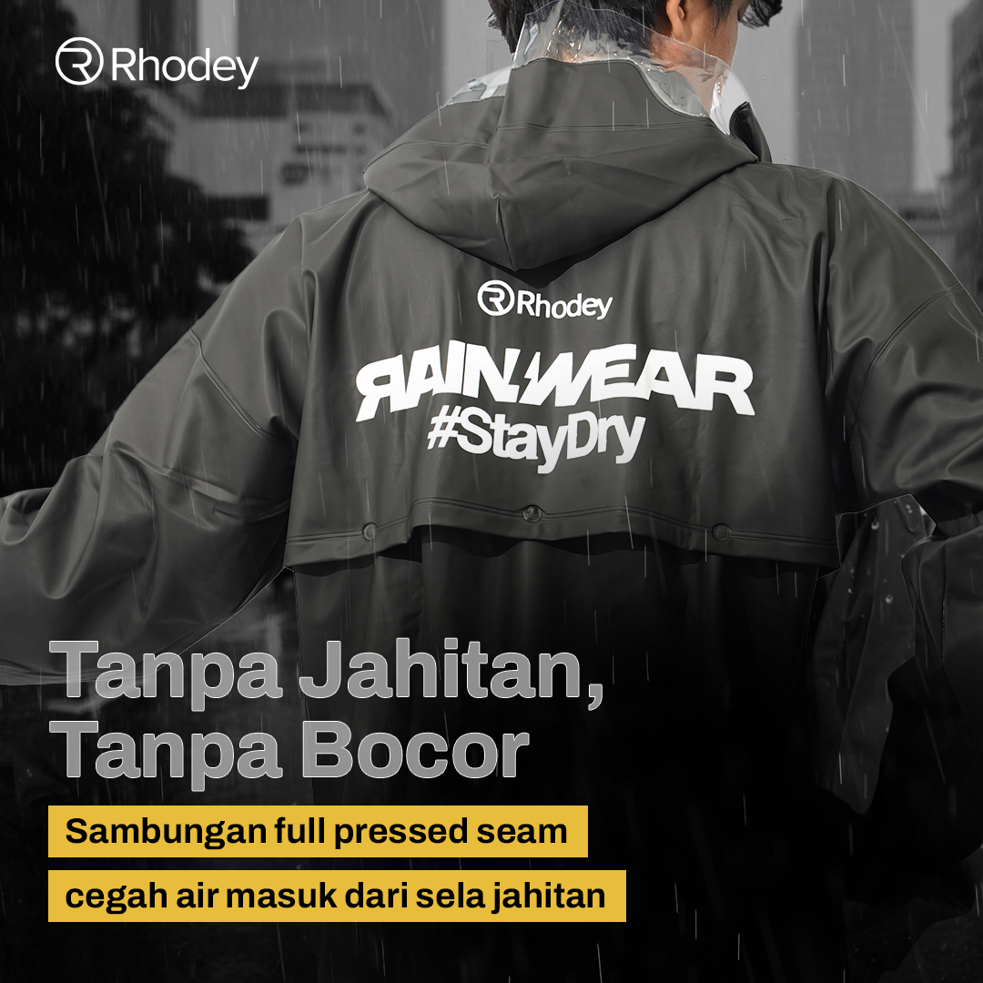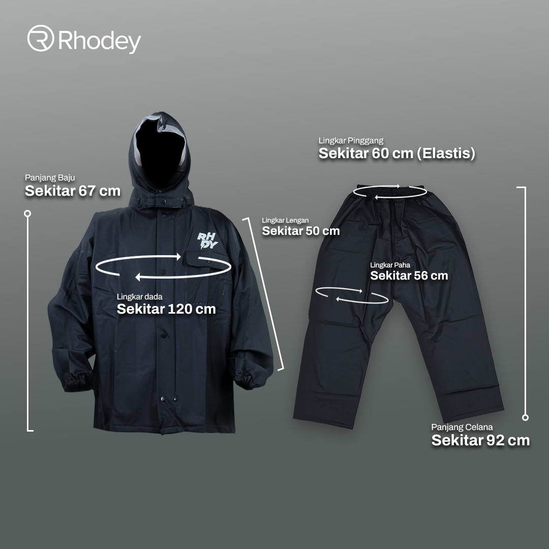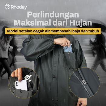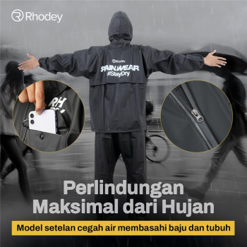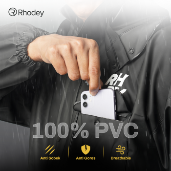 Lindungi tubuh dari guyuran air hujan saat berkendara dengan menggunakan jas hujan motor dari Rhodey. Menawarkan model setelan, jas hujan ini dapat melindungi tubuh secara menyeluruh. Bahan PVC100% waterproof memastikan tidak ada air yang masuk membasahi baju atau tubuh. Semakin lengkap dengan model full pressed seam untuk memastikan tidak ada air yang masuk dari celah jahitan.