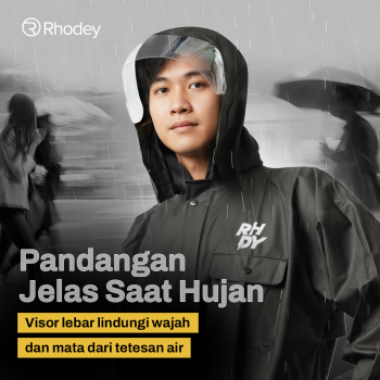 | Pandangan Jelas Saat Hujan Berkendara saat hujan tetap aman berkat visor lebar yang dapat melindungi wajah dan mata dari tetesan air. Pandangan pun lebih jelas meski hujan deras. |