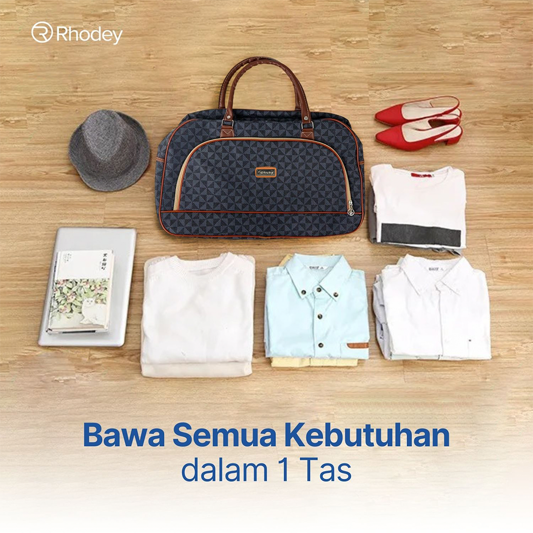 Butuh membawa banyak barang tapi kurang suka menggunakan koper? Tas travel dari Rhodey jawabannya! Hadir dengan ukuran jumbo, tas ini dapat Anda gunakan untuk membawa aneka kebutuhan selama traveling. Terbuat dari perpaduan kulit sintetis dan nilon berkualitas yang tebal dan waterproof, lengkap dengan double ritsleting memastikan barang bawaan tetap aman. Gunakan tas travel ini untuk membawa aneka kebutuhan kapan saja dan di mana saja.