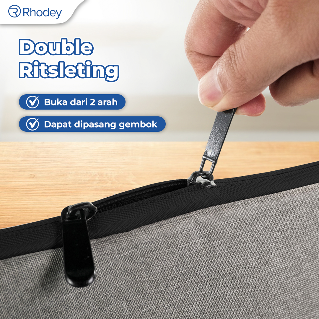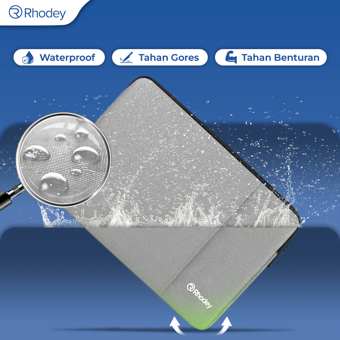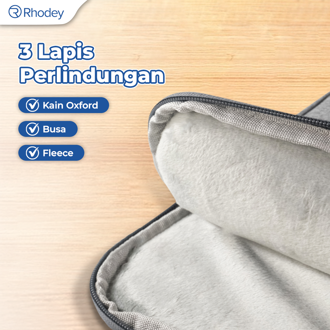 | Double Ritsleting Lebih Aman Sleeve case Rhodey dilengkapi double ritsleting untuk meningkatkan keamanan. Model ritsleting ini juga memudahkan Anda mengambil barang tanpa harus membuka seluruh sleeve case tas. |
